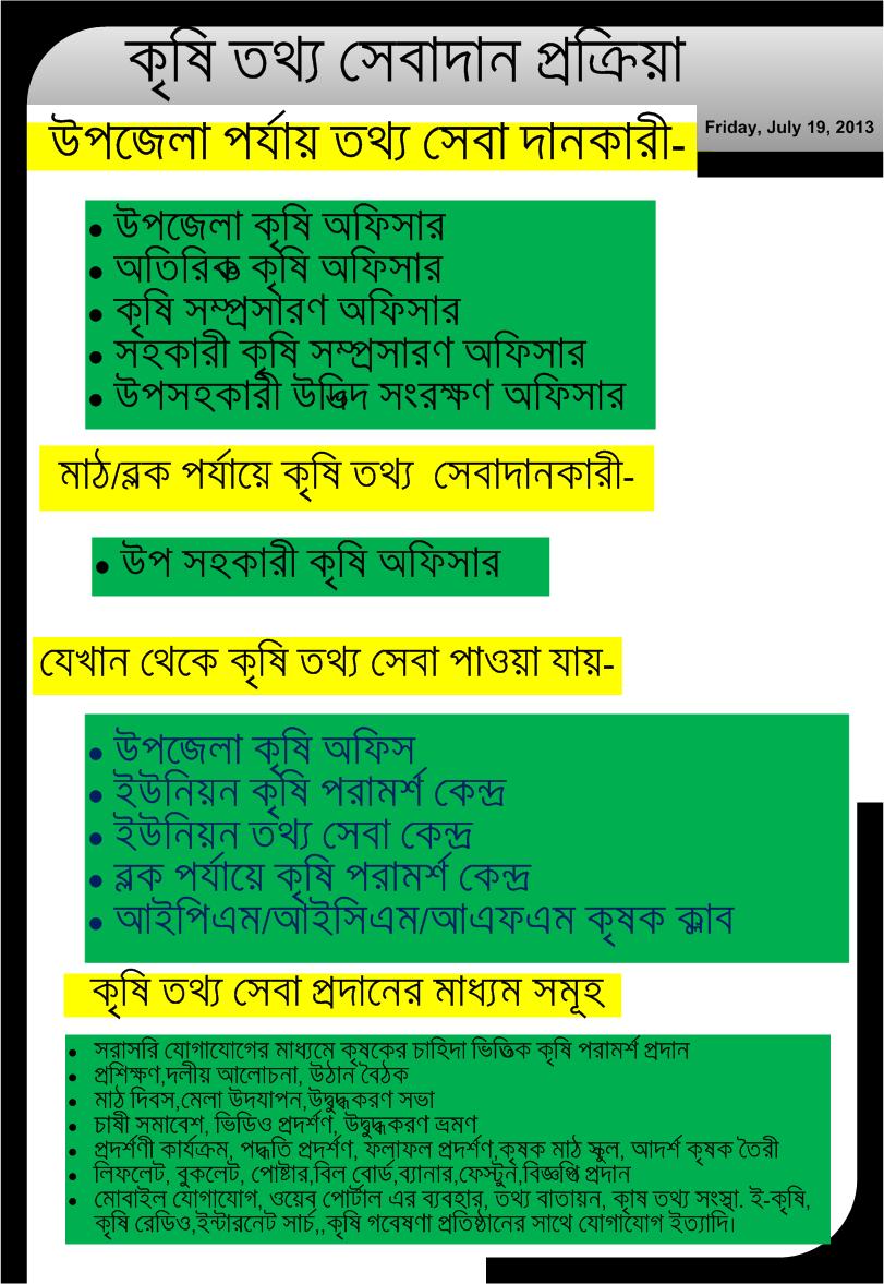| ১০ | কৃষি তথ্য সেবাদান প্রক্রিয়া | দেখুন |