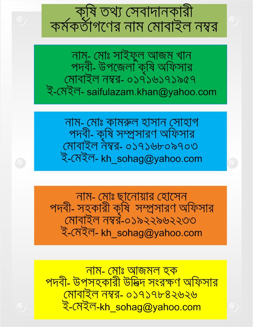 | ৯ | কৃষি তথ্য সেবাদানকারীবৃন্দ | দেখুন | |